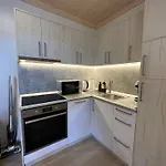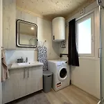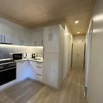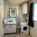 Dom wakacyjny dysponuje również aneksem kuchennym wyposażoną w kuchenkę mikrofalową, czajnik elektryczny i lodówkę.